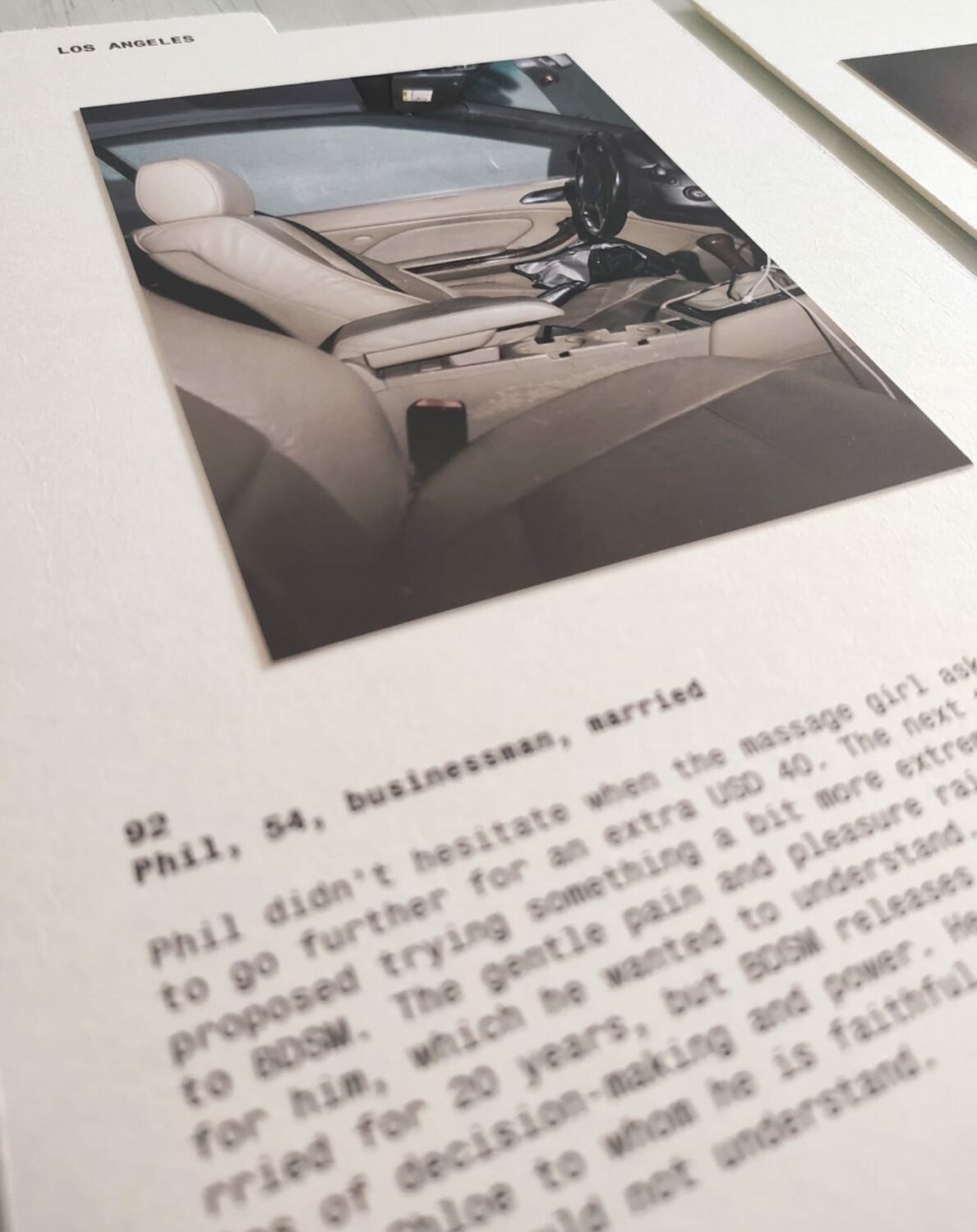 La motivación de este proyecto es, precisamente, luchar contra eso: explicar el trabajo sexual incluyendo a todos los actores de lo que sucede. Quería hacer un ejercicio de equilibrio visual. Ponerles cara a los clientes, pero sin juzgar, porque este es un trabajo de colaboración entre esas personas y yo, en el que hay mucha confianza entre ambas partes.