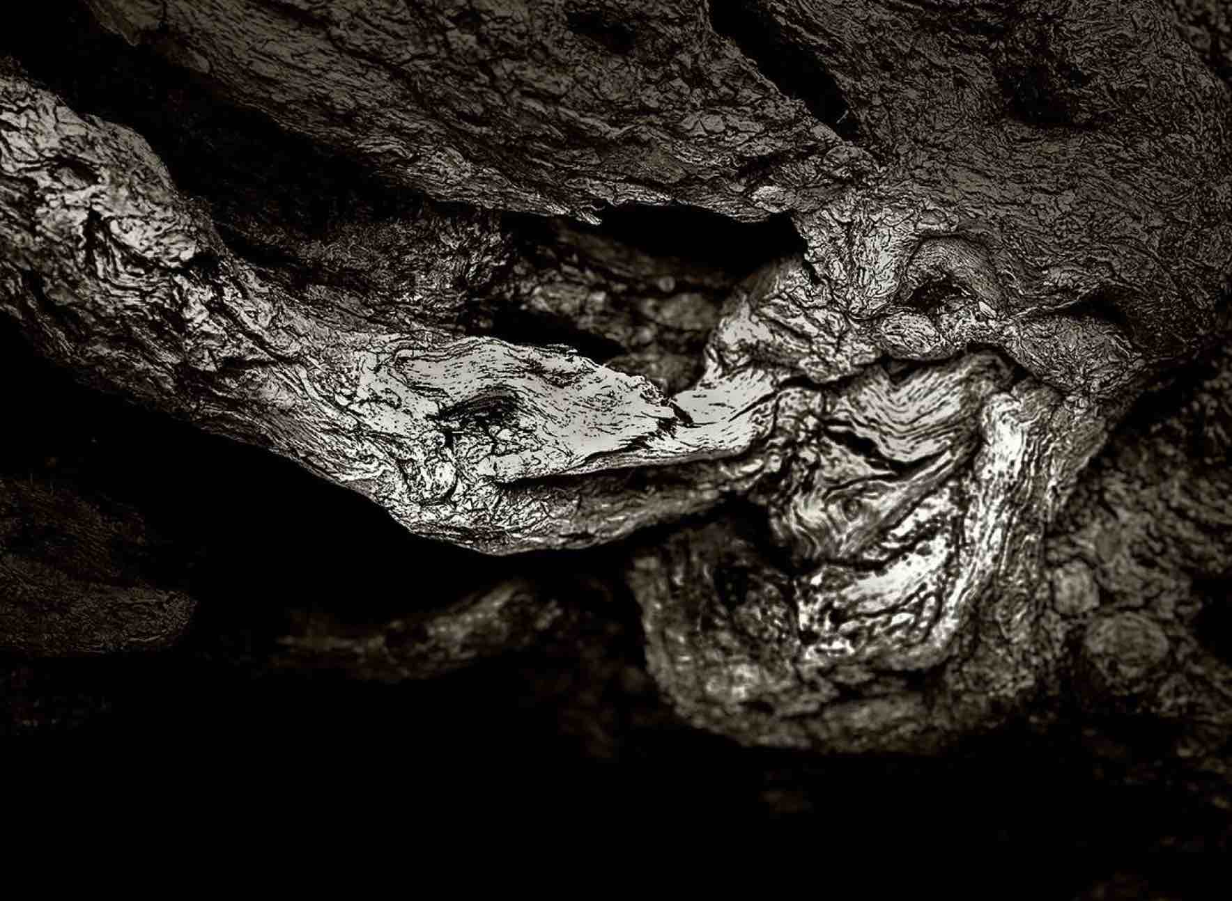 El sufrimiento se retuerce en el tronco, en las ramas, en el surco interior y en su superficie, dibujando según la posición del sol: piel de brazos ancianos, ruina, estrías y arrugas en caras grotescas, cráneos de cabras (Antonio dedicó, en 2018, una colección de fotografías de cráneos de cabras encontrados en las laderas del monte en Hydra; la serie, titulada ‘The Arcadians’, fue expuesta ese mismo año en Hydra School Projects), cocodrilos, sapos.