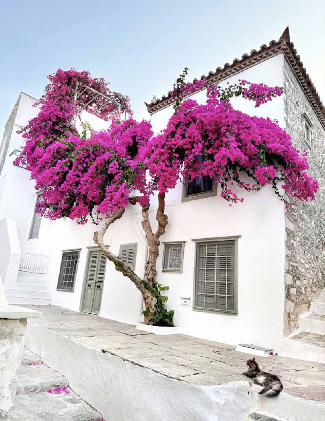 Expuesta al sol durante el día, reposando bajo la luz de la luna en las noches, desmayada sobre la fachada de su casa a la que parece abrazar, duerme, abandonada a su perfección, una Buganvilla extraordinaria, como si del último Bugatti se tratara.