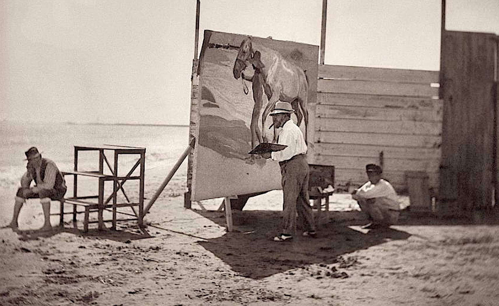 Con respecto a ‘El baño del caballo’, que bien pudiera haber sido la imagen promocional de la muestra y que, según Varela, “es otra de las piezas icónicas de la exposición”, representa a un adolescente desnudo y con un gran sombrero de paja, sacando del mar un caballo blanco.