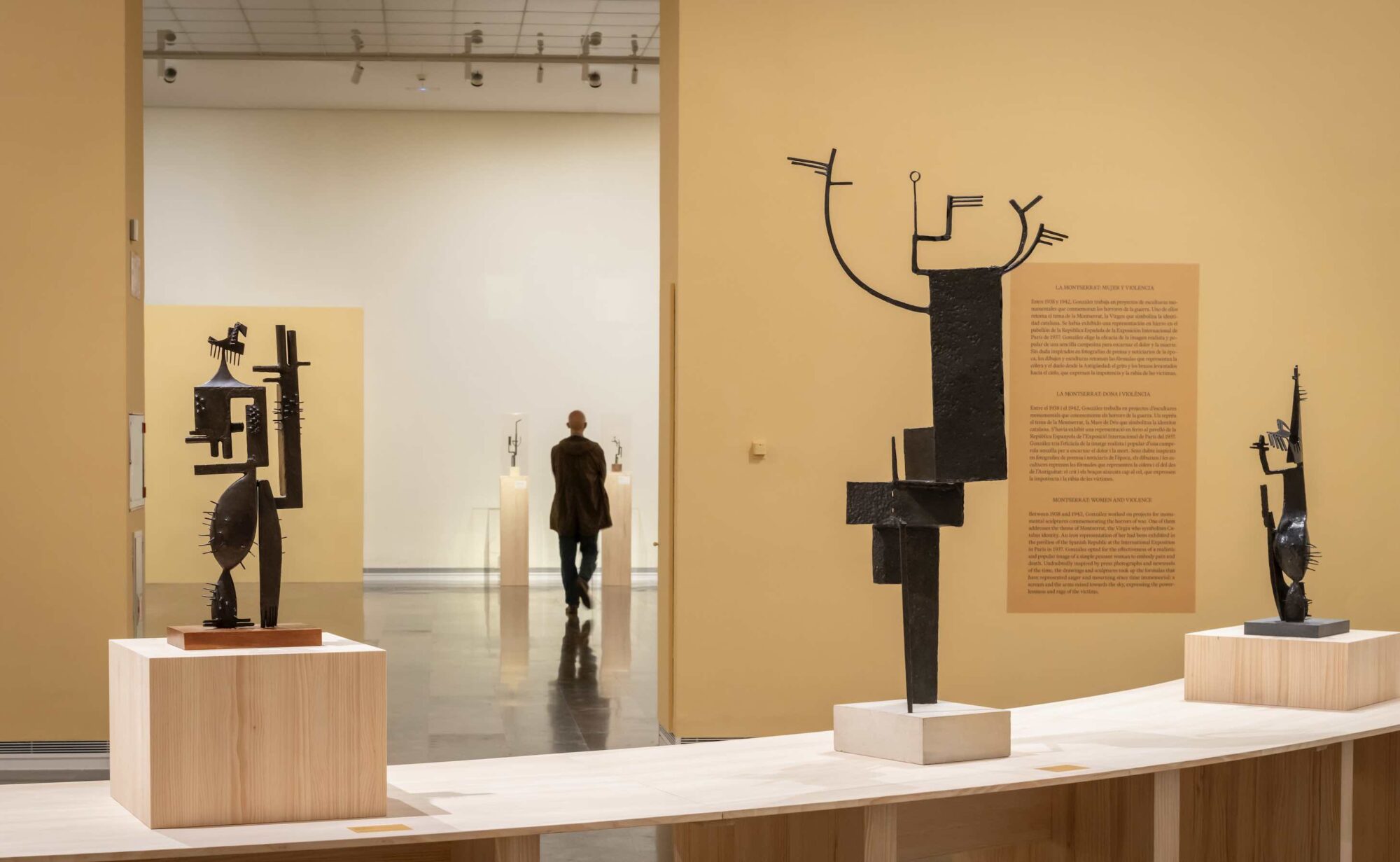 Es esta parte de la exposición, allí donde la violencia comparece como consustancial a la vida y la muerte, la que viene a sellar el tránsito que va del universo familiar íntimo, a la modernidad que pronto se verá truncada por el estallido bélico. Las mujeres representadas por Julio González poseen ese carácter poliédrico de las figuras habitadas por el misterio de la vida, al tiempo que destilan el dolor inscrito en esas mismas figuras despojadas de interioridad.