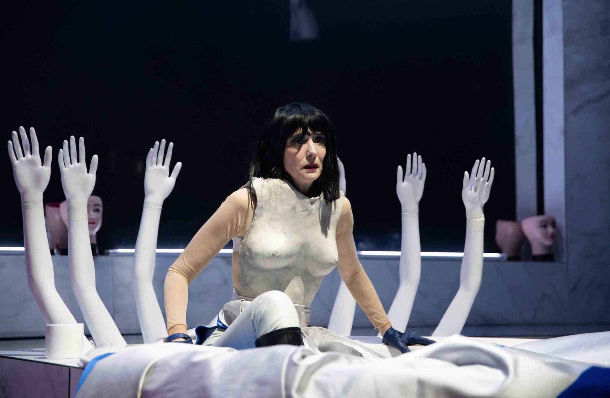 Rakel Camacho, autora de la versión de la obra que ella misma dirige y que ahora recala en el Teatro Olympia de València, amplía la escenografía, incluyendo una bañera en cuyos lados sobresalen algunos brazos de maniquíes, además de trajes coraza para subrayar los torsos de las actrices, aunque manteniendo el espacio cerrado de la habitación en la que se debate la pasión amorosa de Petra von Kant, que interpreta Ana Torrent.