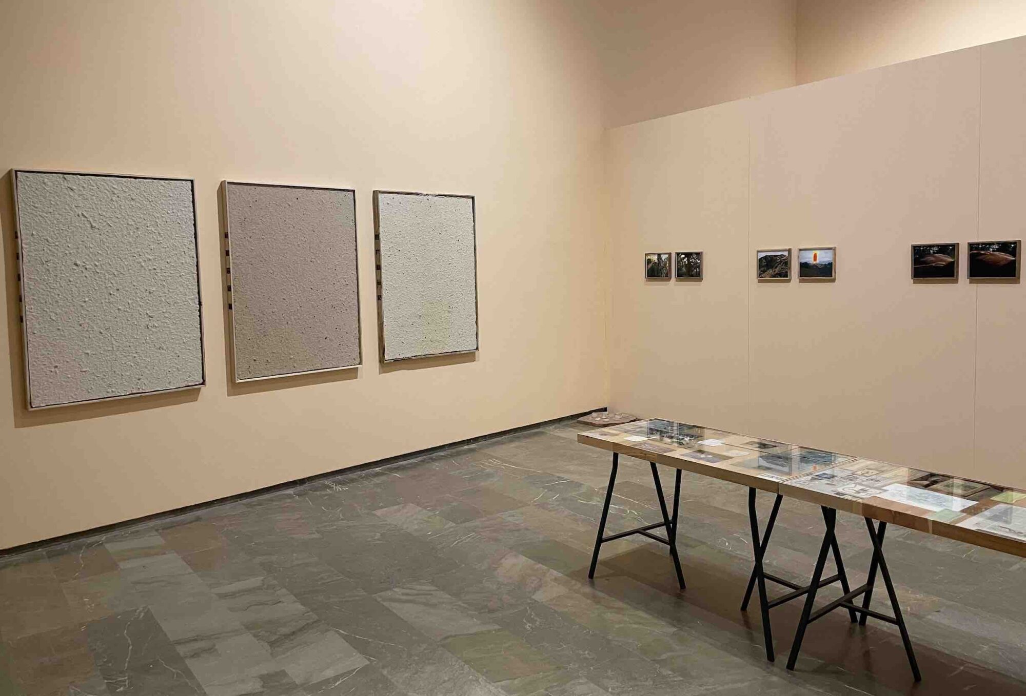 Una exposición que ha sido “costosa de trabajar”, según calificó su creadora, a consecuencia de la exhaustiva indagación que hay detrás y que íntegramente forma parte de la obra. Las piezas que han ayudado a construir esta oda al cielo descansan en el centro de la exposición sobre tres mesas hechas por doce maderas distintas. Es ahí donde puede encontrarse el corazón de la muestra, o al menos, uno de ellos, las tretzenades.