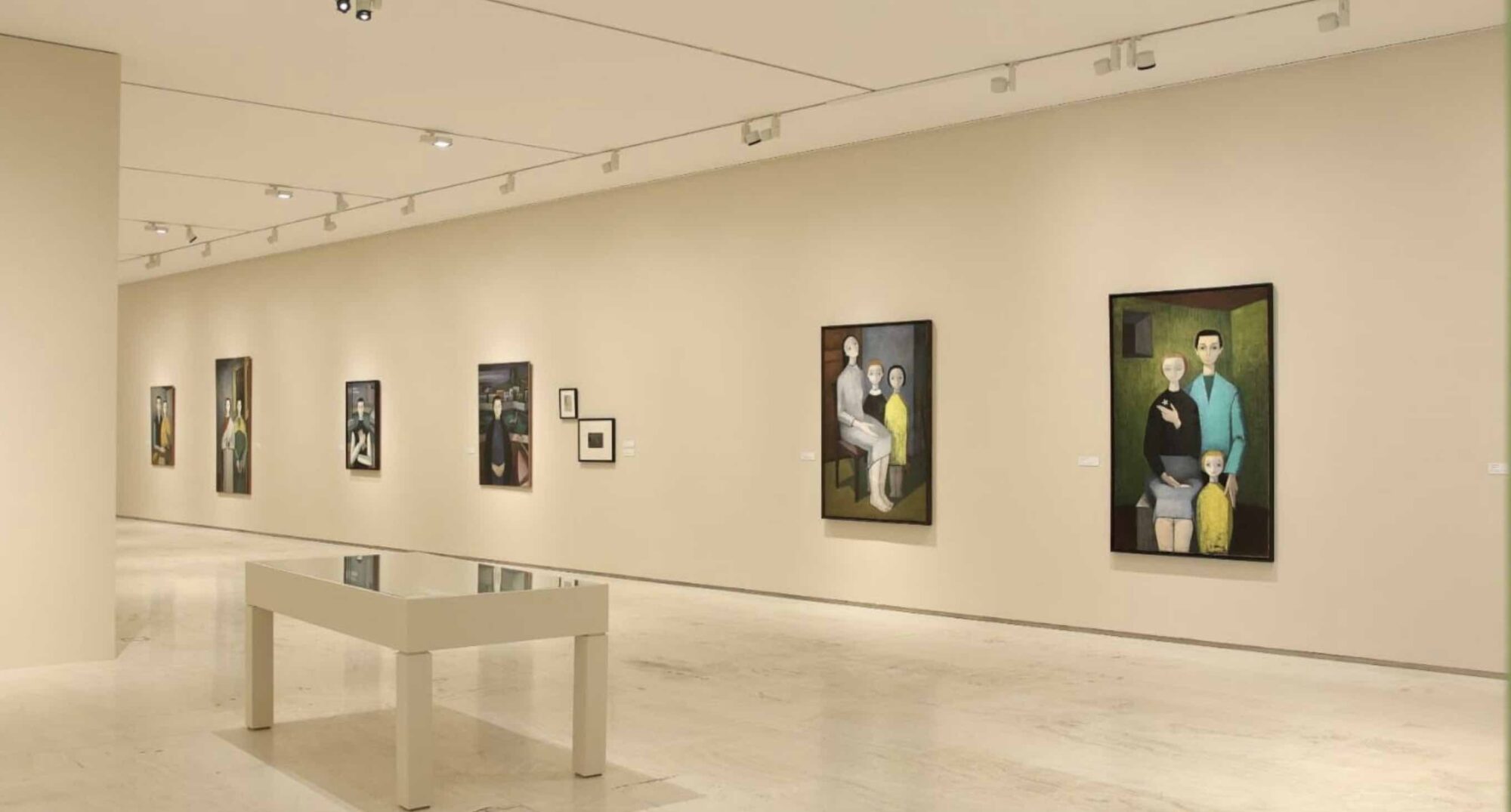 El hieratismo y la frontalidad, así como las influencias italianizantes son claras a partir de 1952, momento en el que figuras humanas grandes empiezan a aparecer sobre fondos geométricos de corte metafísico. En ‘Figura de un hombre’ todavía se reconoce el fondo de un puente en algún lugar urbanizado, pero claramente hay algo que esconde, bien sea en su mirada o en el libro que oculta. A partir de estos años, sus exposiciones y varios reconocimientos en certámenes se suceden y sitúan a la artista en el centro del panorama artístico nacional.