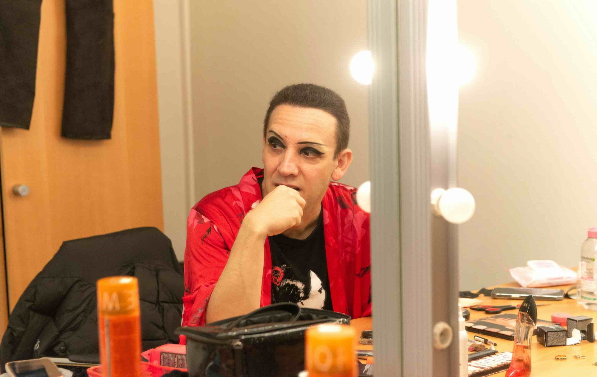 Intención hay, porque siempre he tenido ganas de hacerlo, desde que era pequeño. Siempre me he sentido atraído por la figura femenina, por el vestuario, por la manera de maquillarse, por la manera que las bailaoras tienen de transformación; porque hay una transformación en ellas, también. Lo que pasa es que, por miedo a los prejuicios y a los juicios sociales, nunca tuve la valentía de hacerlo. Pero las ganas, de siempre.
