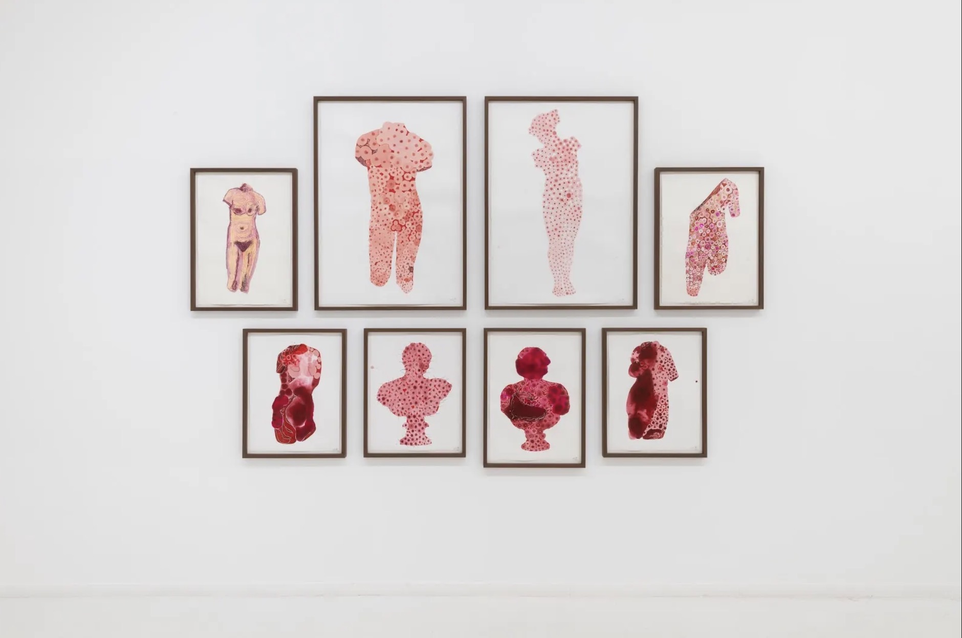 También se presentan una serie de obras de nueva producción donde resaltan piezas que recrean bustos antes destinados a la mirada ajena; figuras que ahora poseen agencia propia al estar formuladas mediante texturas que evocan pezones o colonias bacterianas.