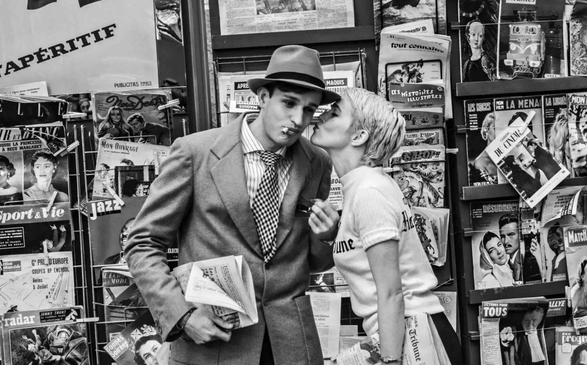 Ya hemos mencionado el caso de Seberg, interpretada por una (para mí) más que aceptable Zoey Deutch, o Belmondo por un Aubry Dullin que da su salto al largometraje. Pero estas dos interpretaciones no serían suficientes para sostener una pieza que es un verdadero collage y en la que cada elemento suma una capa a las pretensiones del director. Sobresaliendo por encima de todos ellos encontramos a un Guillaume Marbeck que, en su también debut en el cine, pone rostro a un Godard que se come la pantalla, devorando nuestra atención.