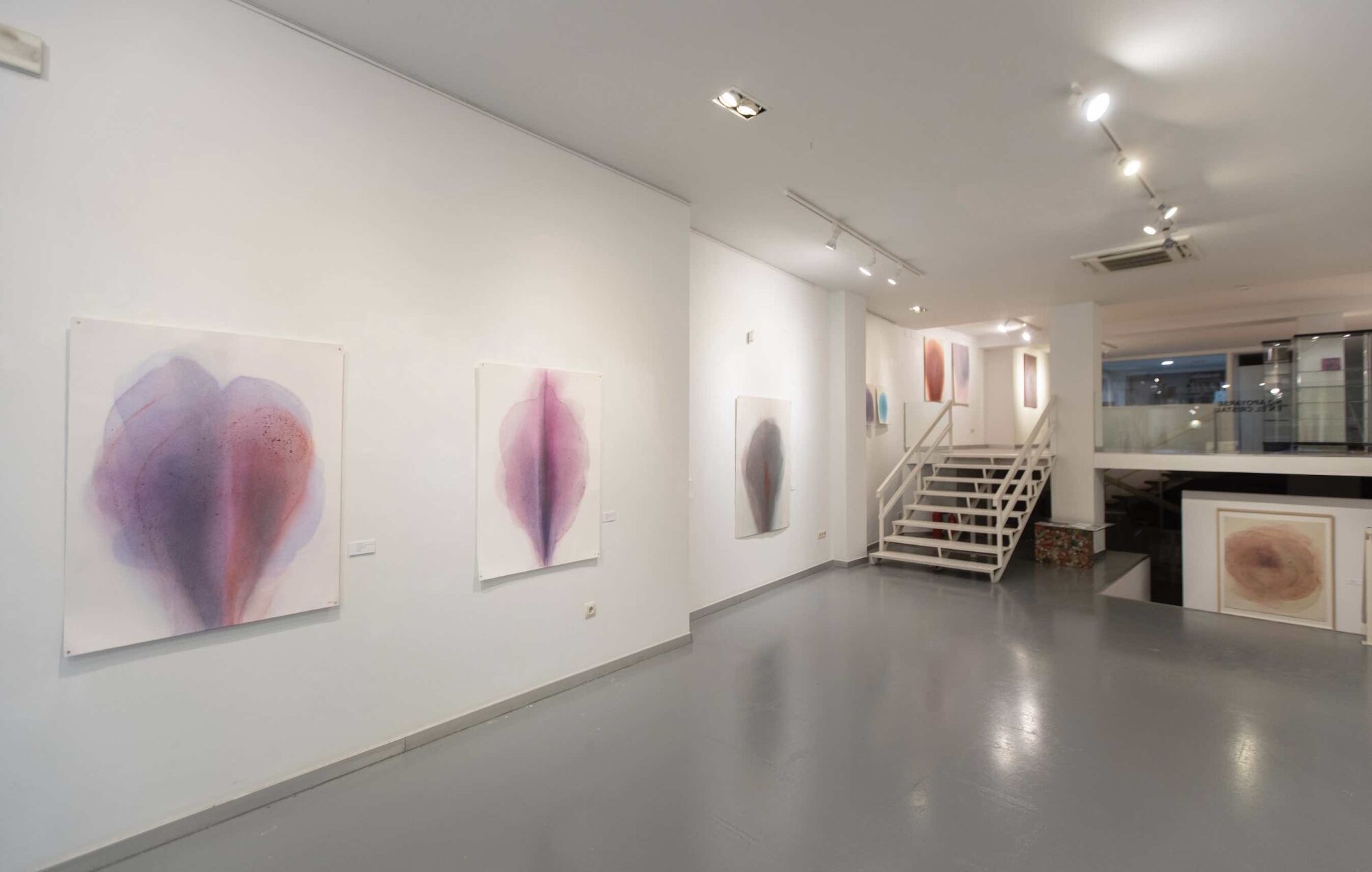La muestra nace como continuidad de otra serie anterior, bajo el título de ‘Rendición’, que comienza a realizar en 2019, donde nos abre la ventana a todo un mundo de manchas y tintas cuyo proceso revela la aparición del color a través de la transparencia; concepto que interesa a la artista y que explora constantemente en sus trabajos.
