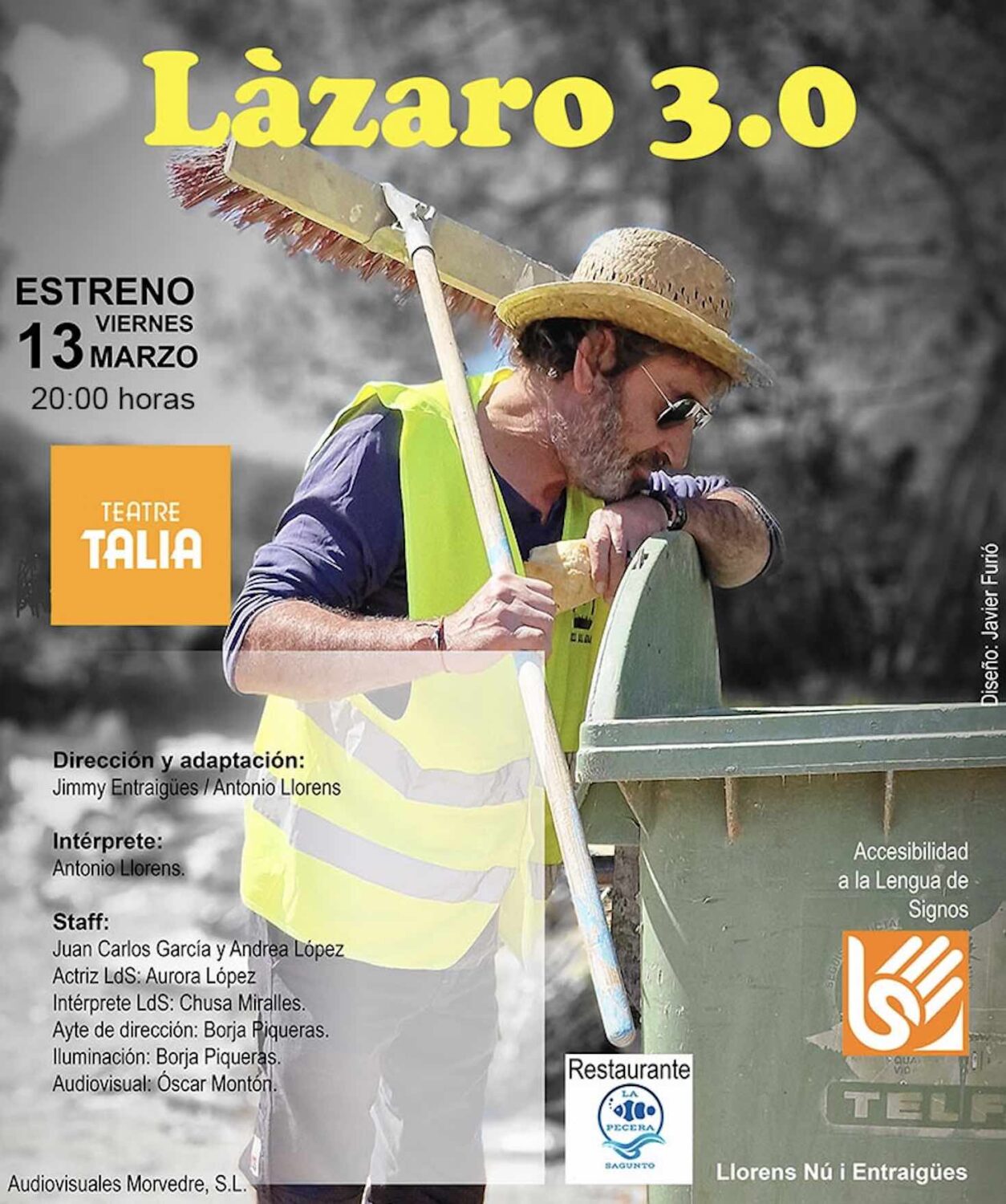 El Teatre Talia de València sube a escena, el 13 de marzo, una nueva y renovada versión del ‘Lazarillo de Tormes’ bajo un prisma actualizado que, sin perder la sátira y la punzante mirada del siglo XVI, llega a la actualidad bajo un argumentario y discurso nuevo con una novedad de carácter inclusivo: ‘Lázaro 3.0’ podrá ser disfrutado no solo por el público habitual del teatro, sino que contará con la colaboración de una actriz en lengua de signos y podrá seguirse, por parte del público sordo, gracias a la participación de una intérprete especializada en dicha lengua.